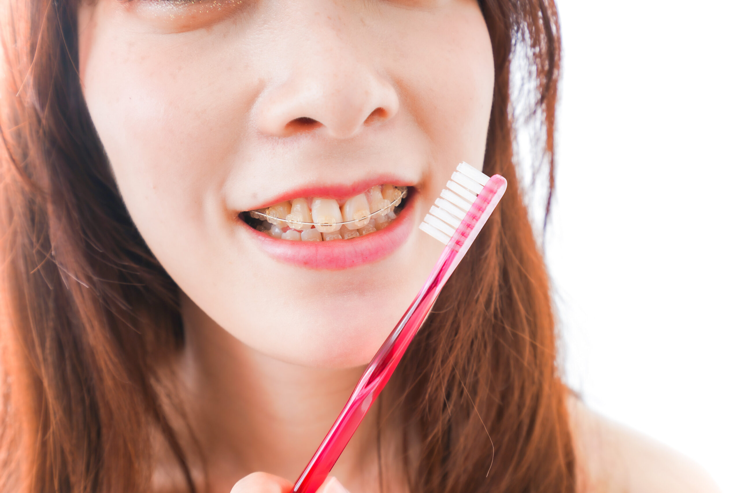 ハーフリンガル矯正では、下の歯が歯磨きしにくいとされています。下の歯は表側矯正で、装置の周辺に食べ物が詰まりやすいからです。